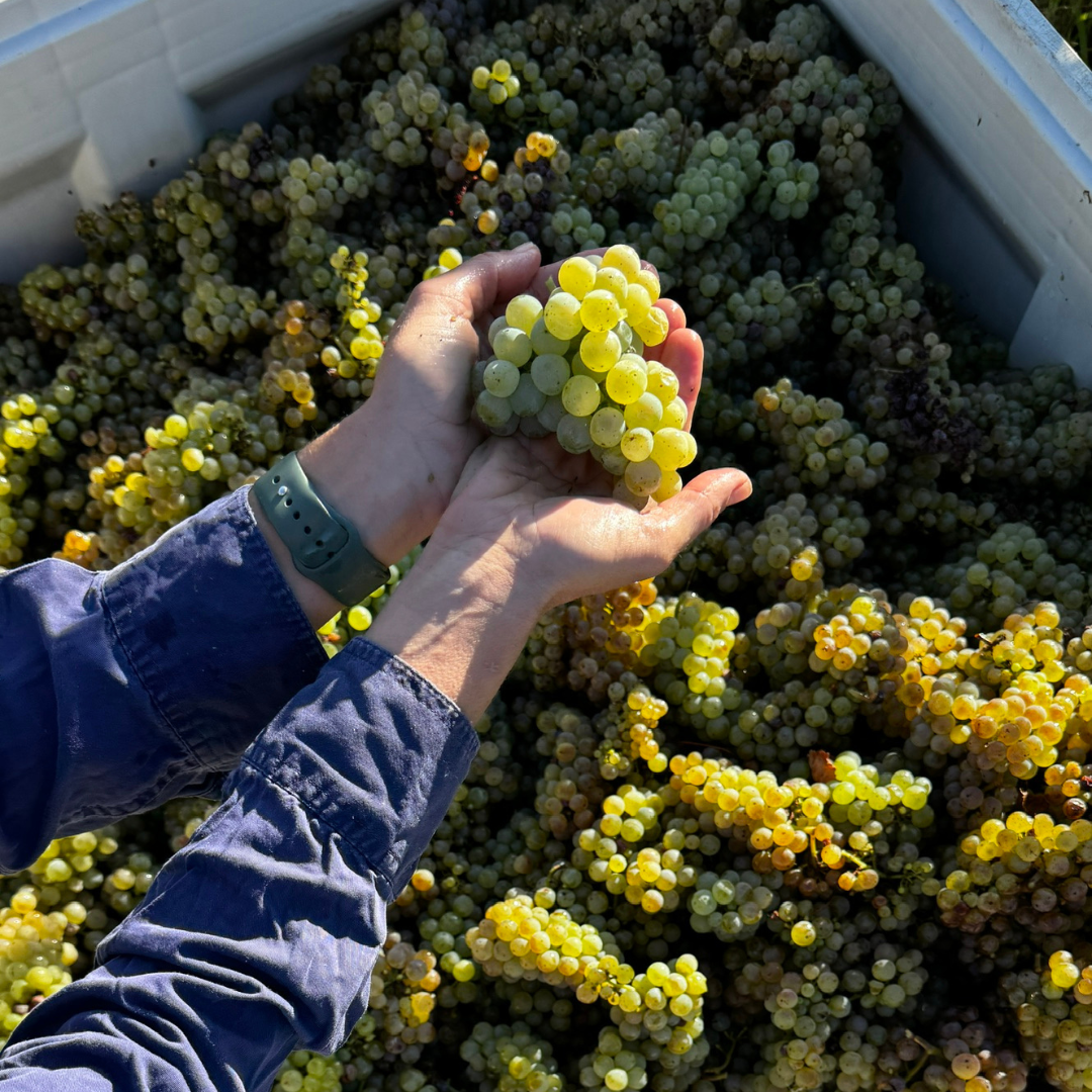 Pictured : In the thick of it! The 2023 Riesling destined for our medium dry wine just harvested.
