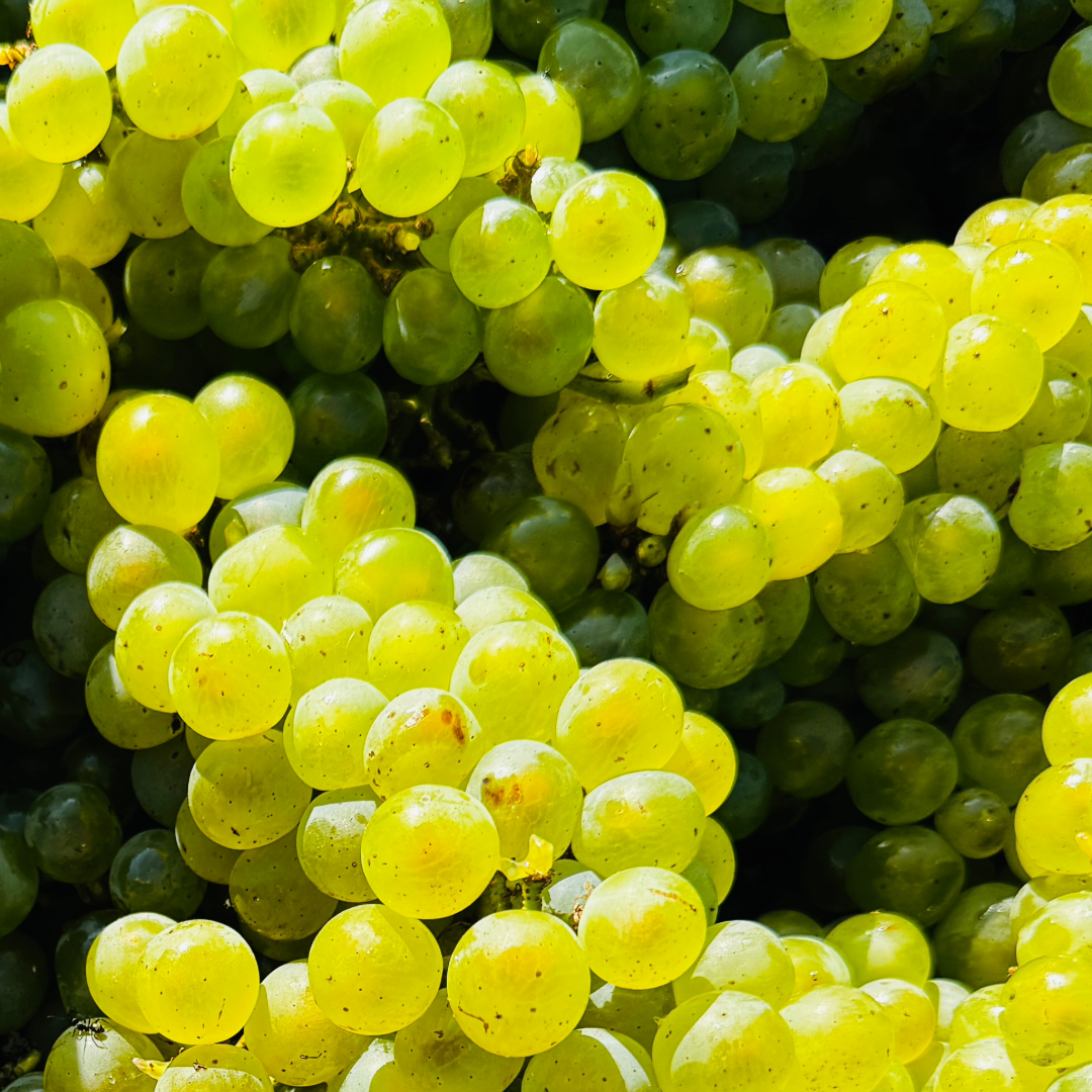 Pictured : Hand picked Chardonnay grapes in the picking bins before heading to the winery.