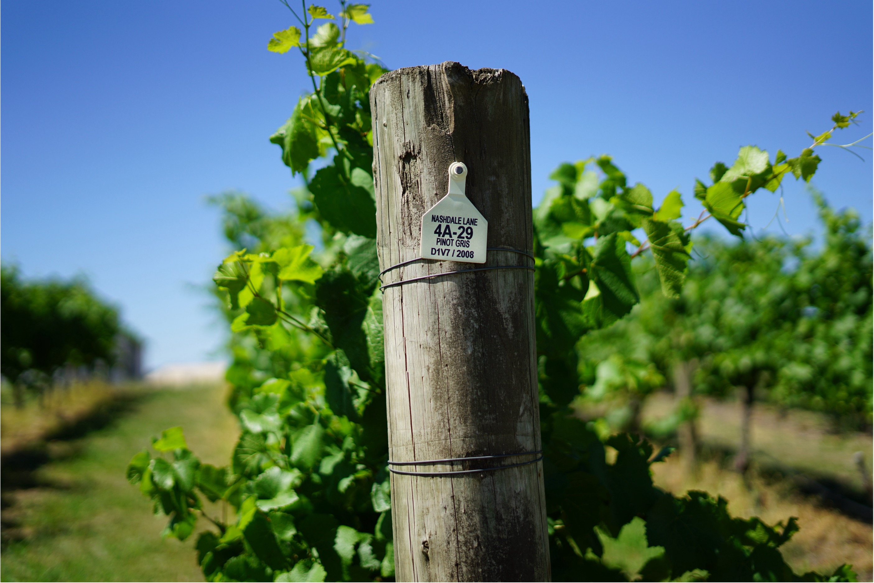 Pictured : Pinot Gris vines from the block just behind the cellar door, planted in 2008.